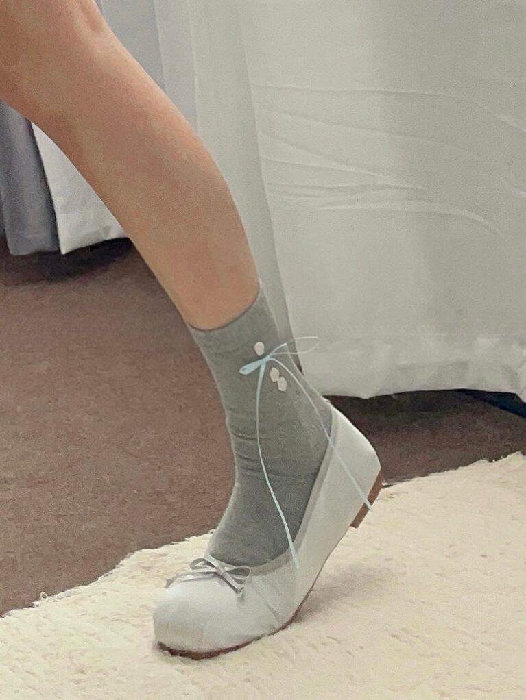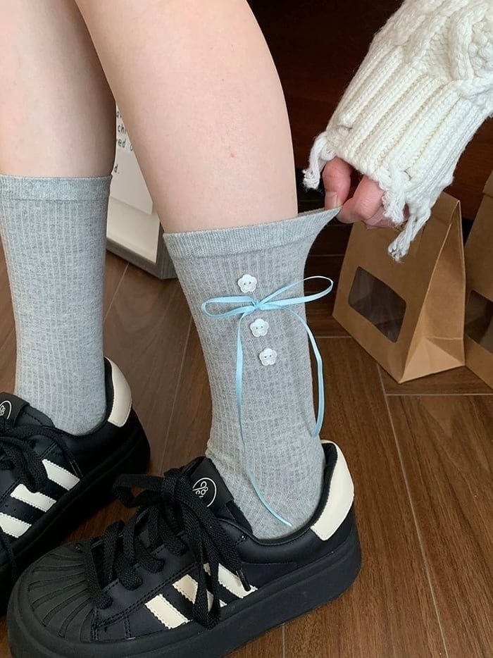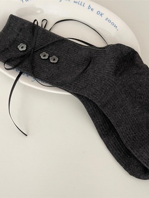 《即納》flower button socks