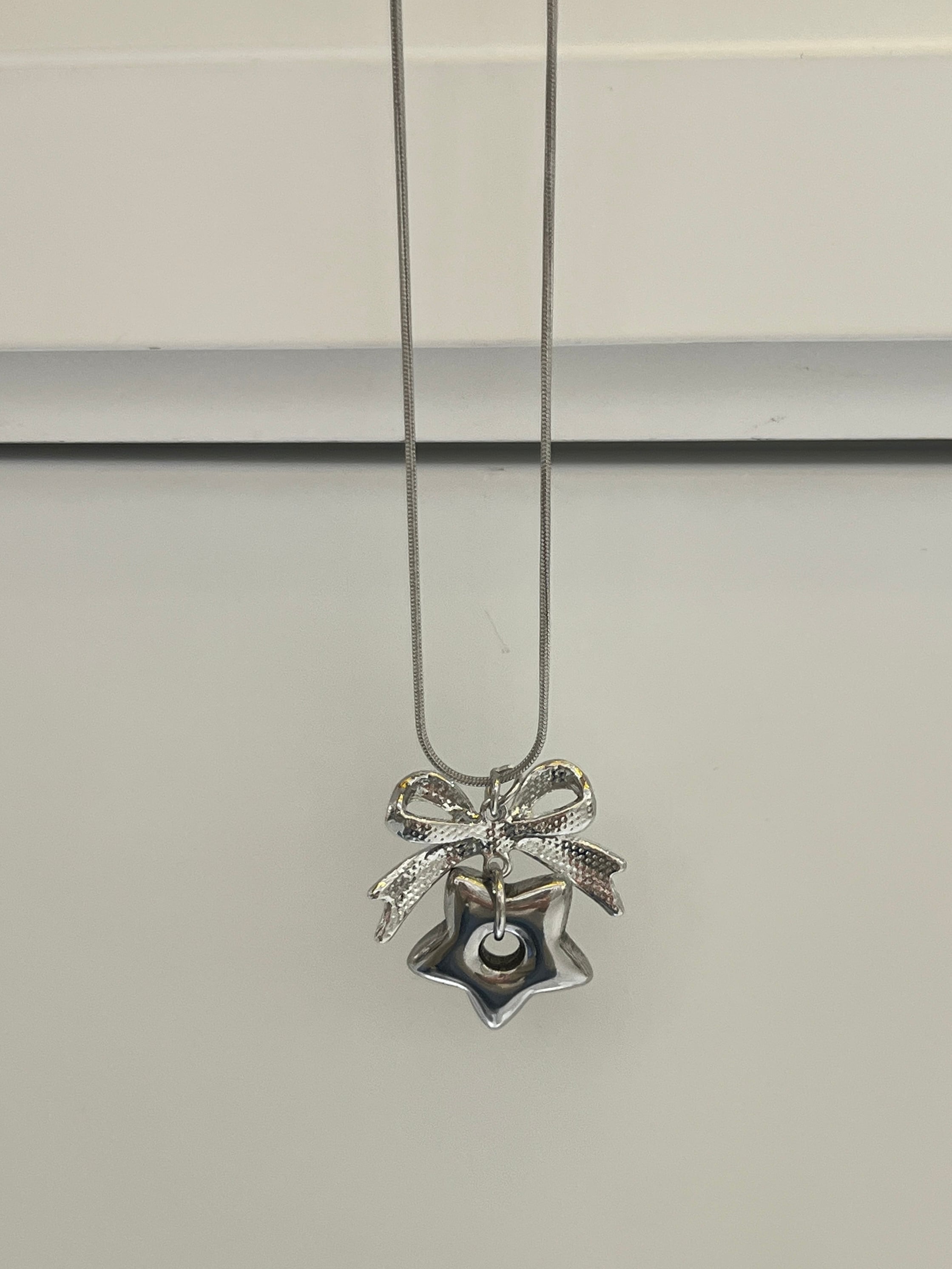 リボンと星の組み合わせのトレンド盛り込みネックレス