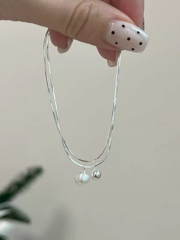 パールとシルバーボールを組み合わせた、上品なツインチャームネックレス。