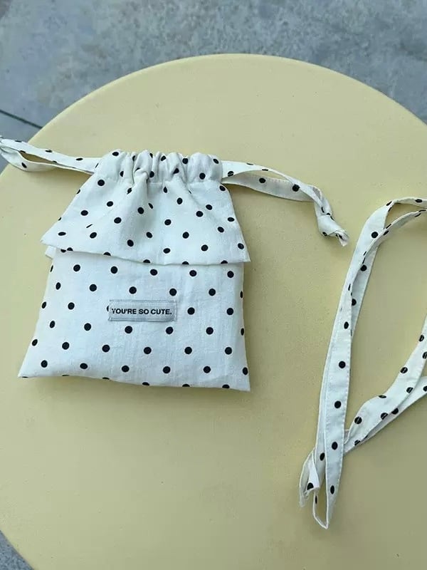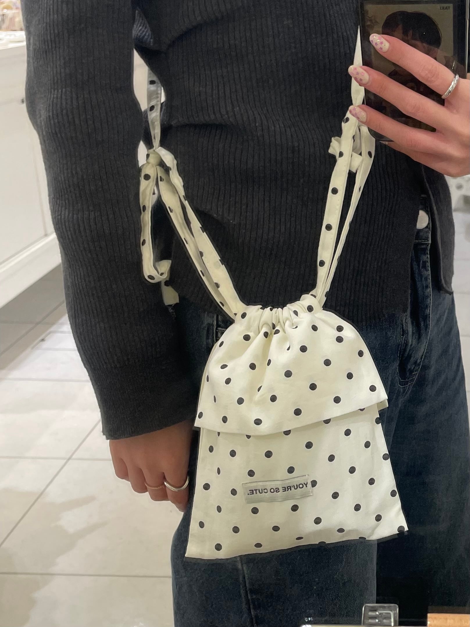 ふんわり巾着のフォルムにキュートなドット柄をプラス
