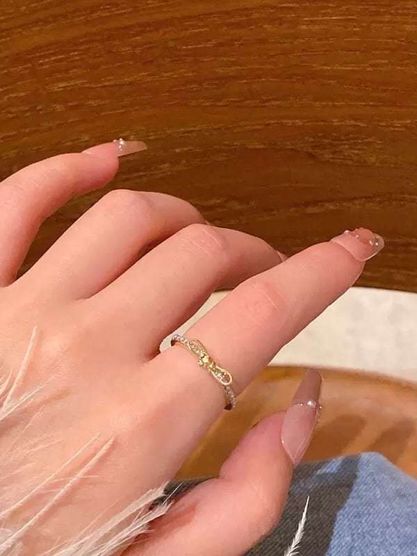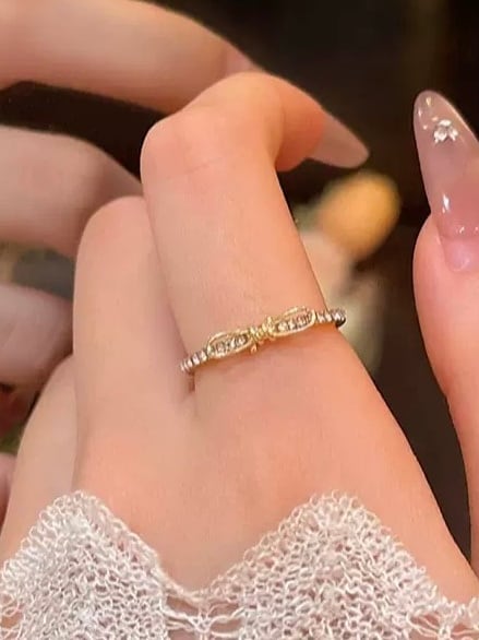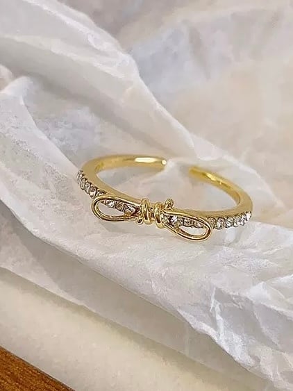 華奢なゴールドリングに結ばれたミニリボンが今っぽい抜け感を演出