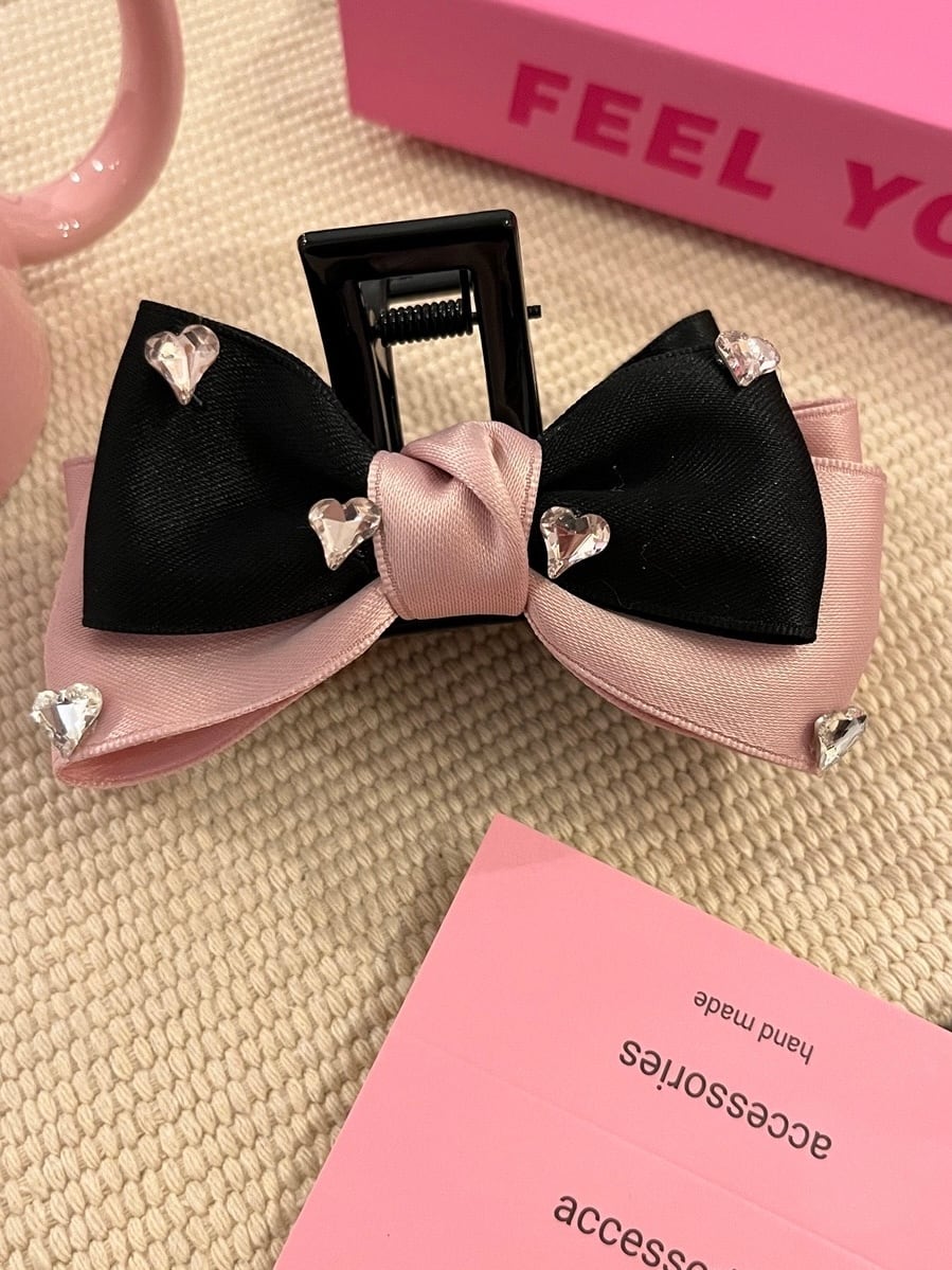 ツートンのリボンに、ハートのストーンを散りばめた大人ガーリーなクリップです♪