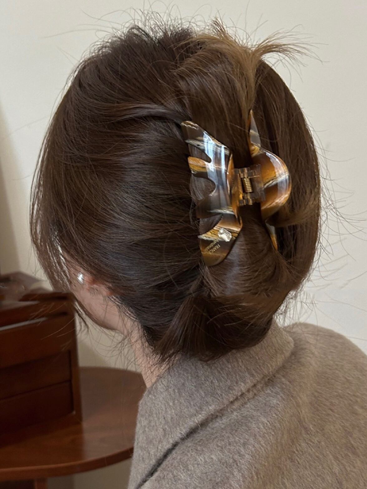 マーブル柄とべっこう柄が目を惹く大人っぽいヘアクリップ♪