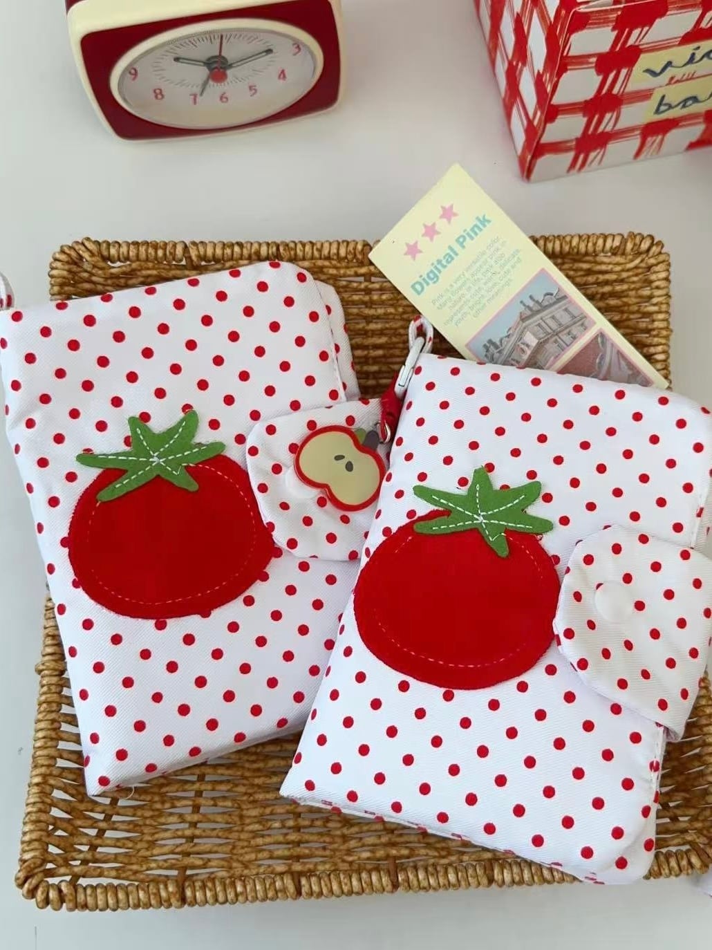 トマトがポイントのドット柄のパスポートケース✈︎