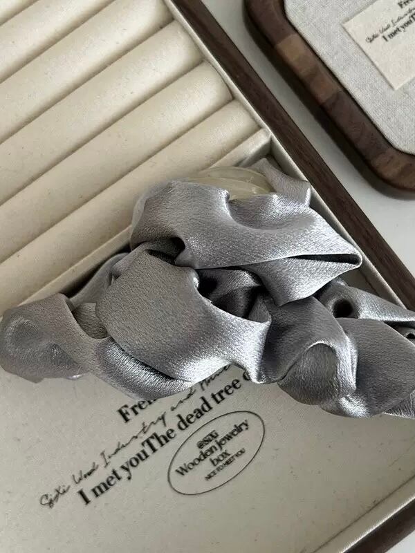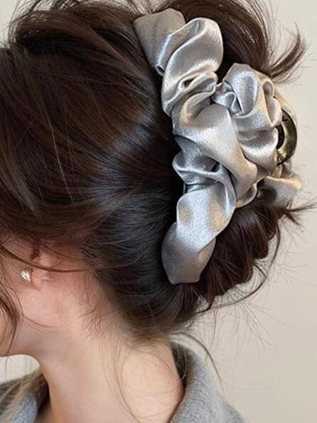 サテンの上品な光沢が魅力のシルバーヘアクリップ