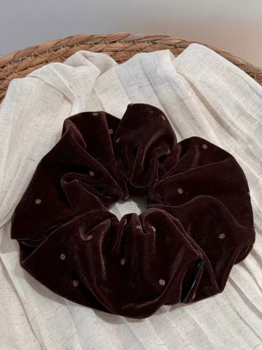 落ち着いたブラウンカラーにドットが程よい甘さをプラスし、