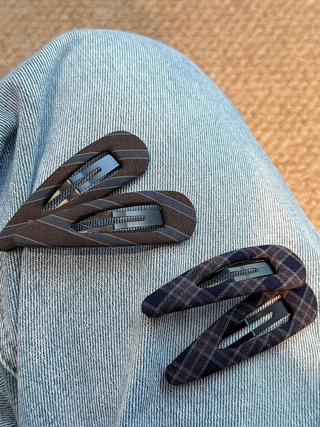 さりげなくポイントになってくれる、大人可愛いチェック柄のヘアクリップセット。