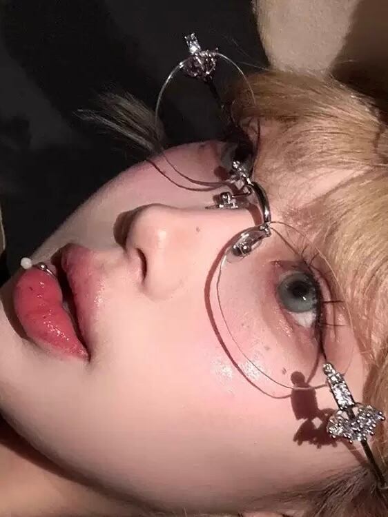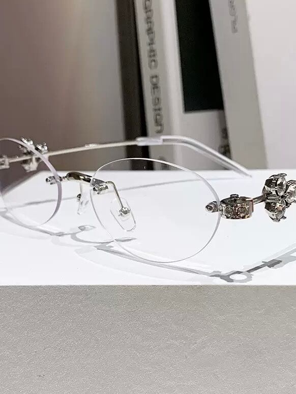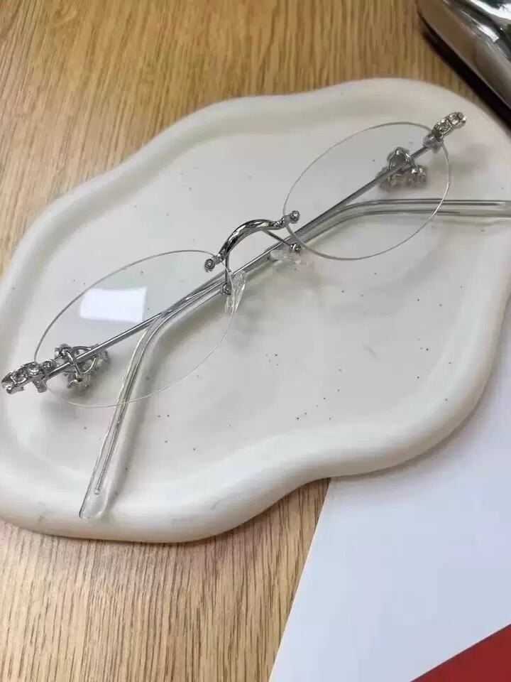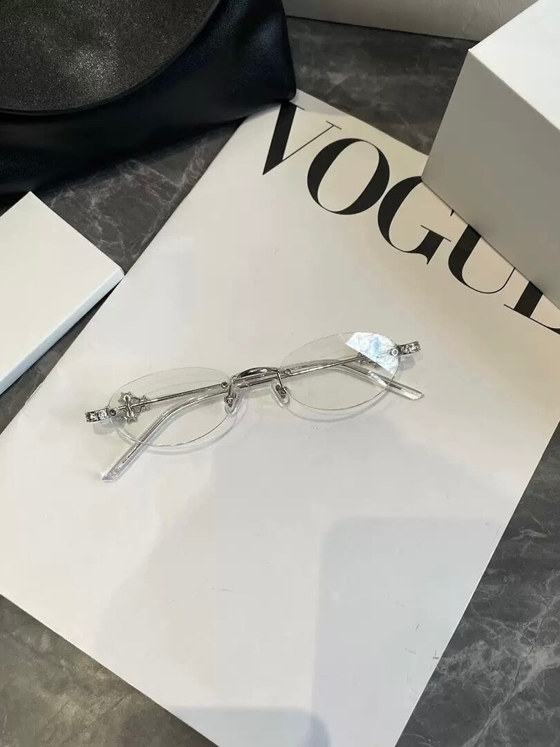 シンプルなのに印象的なビジュー付きリムレスメガネ