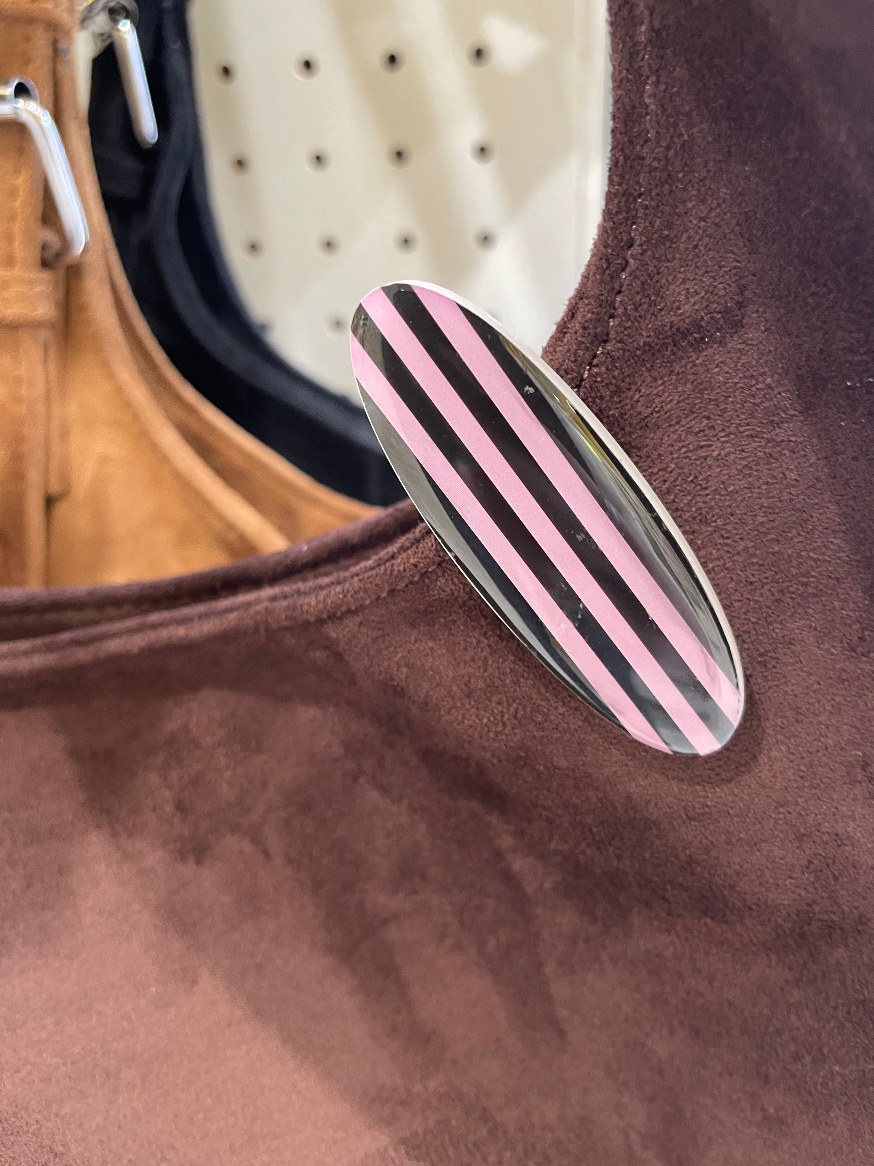 小ぶりながらアクセントになるデザインでジャケットやバッグなどにさっと付けてコーディネートを格上げできます
