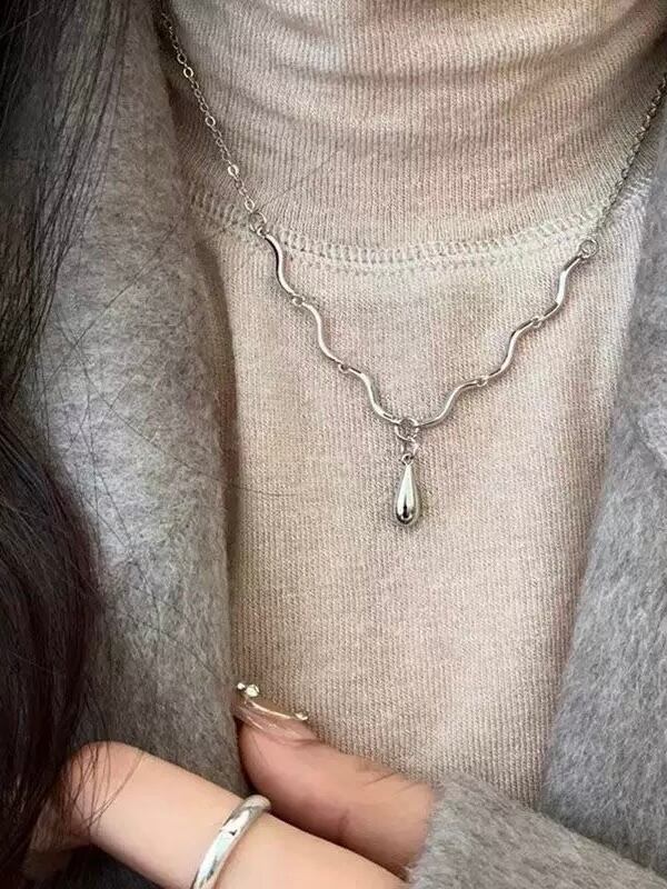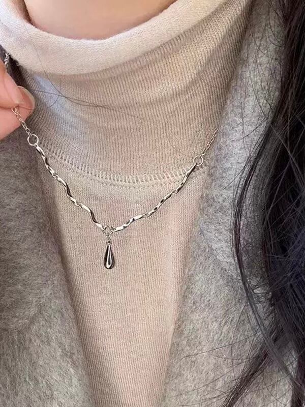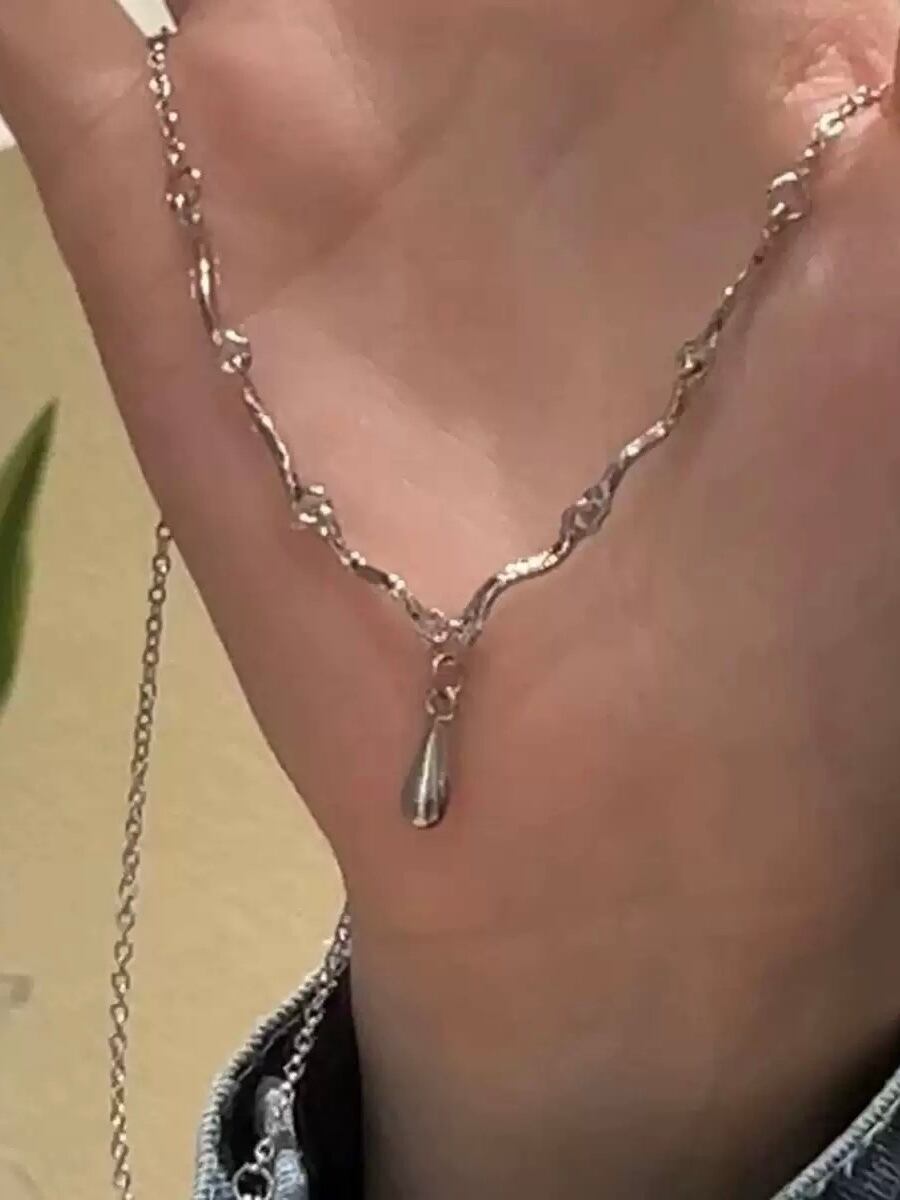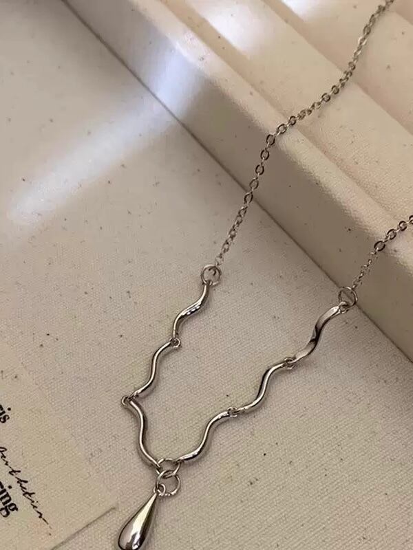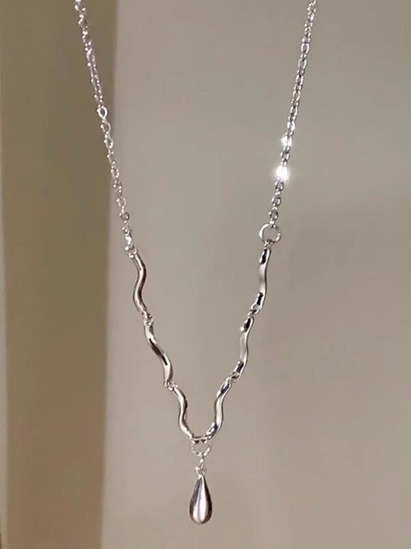 波のようなラインが印象的なドロップデザインのシルバーネックレス