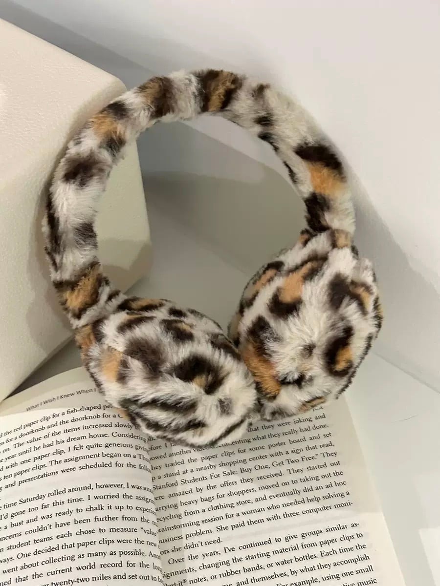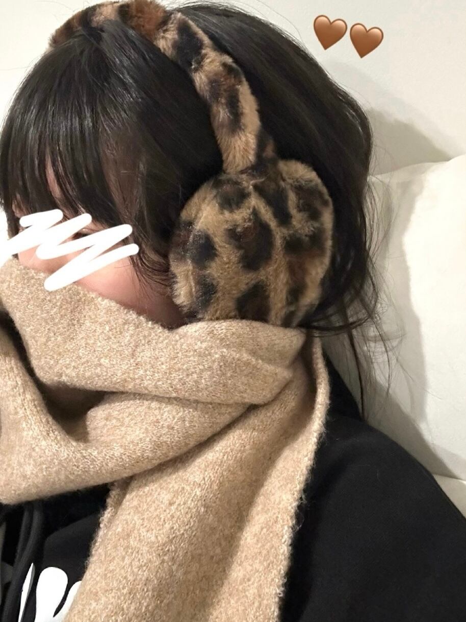 なめらかな短毛ファーを使用した上品なレオパード柄イヤマフ