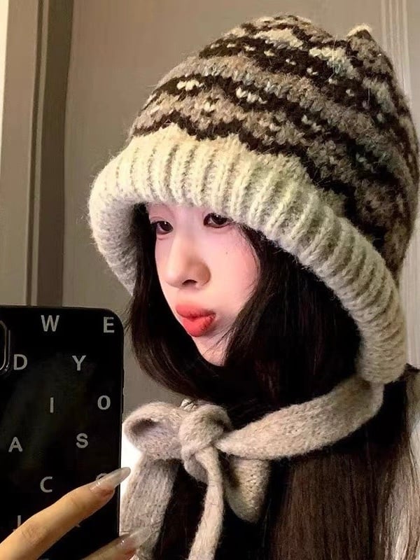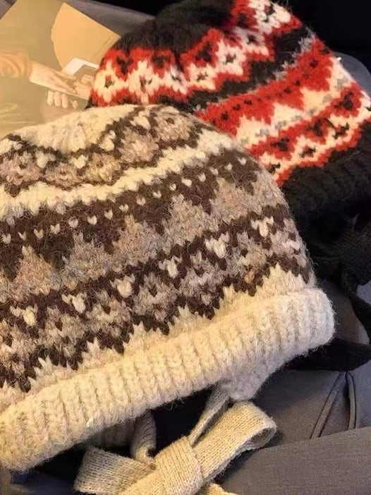 やわらかなニット素材で仕上げたノルディック柄のバラクラバ