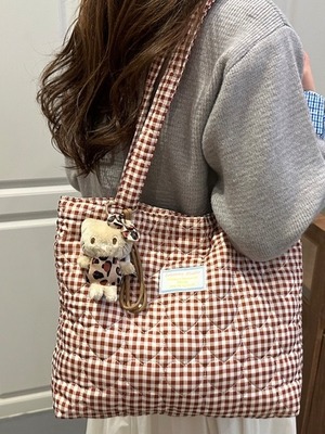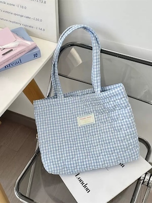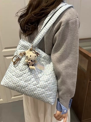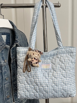 《即納》heart stitch gingham tote bag