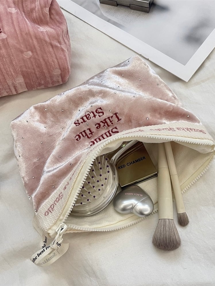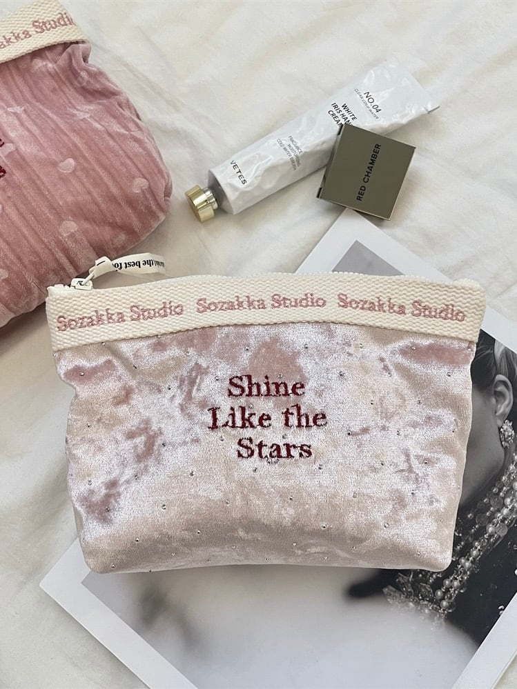 なめらかなベロア素材に小さなストーンを散りばめたミディアムサイズのポーチ