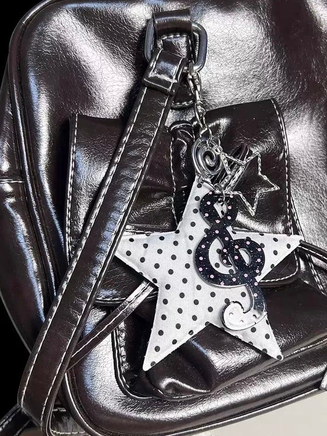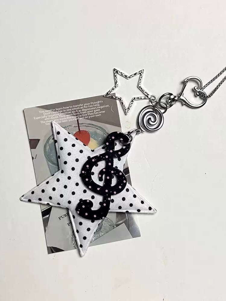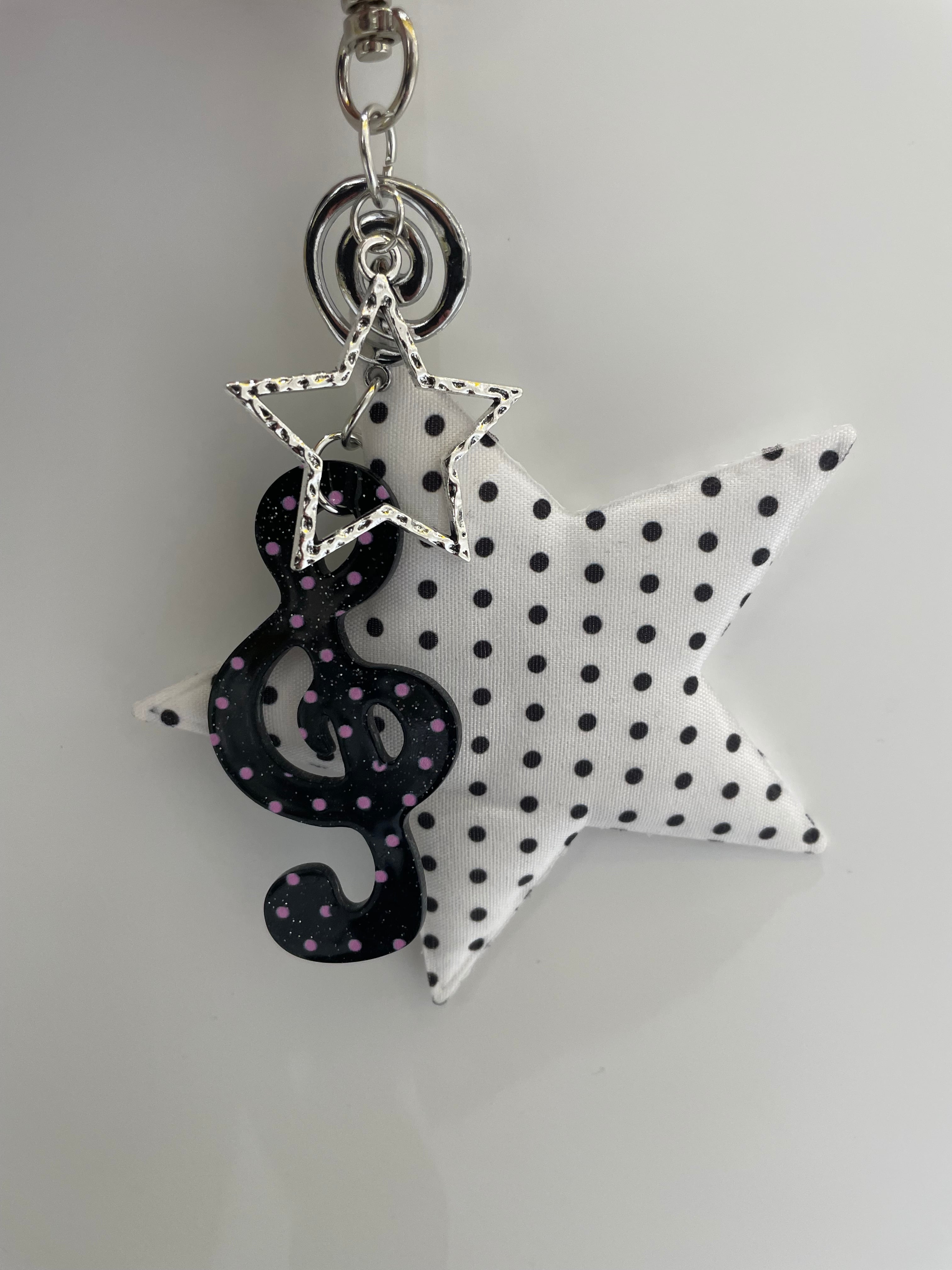 クッション性のある星型のチャームと大きめの音符が目を引くバッグアクセ