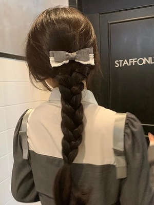 グレーのリボンにレースを合わせた大人かわいいヘアクリップ。
