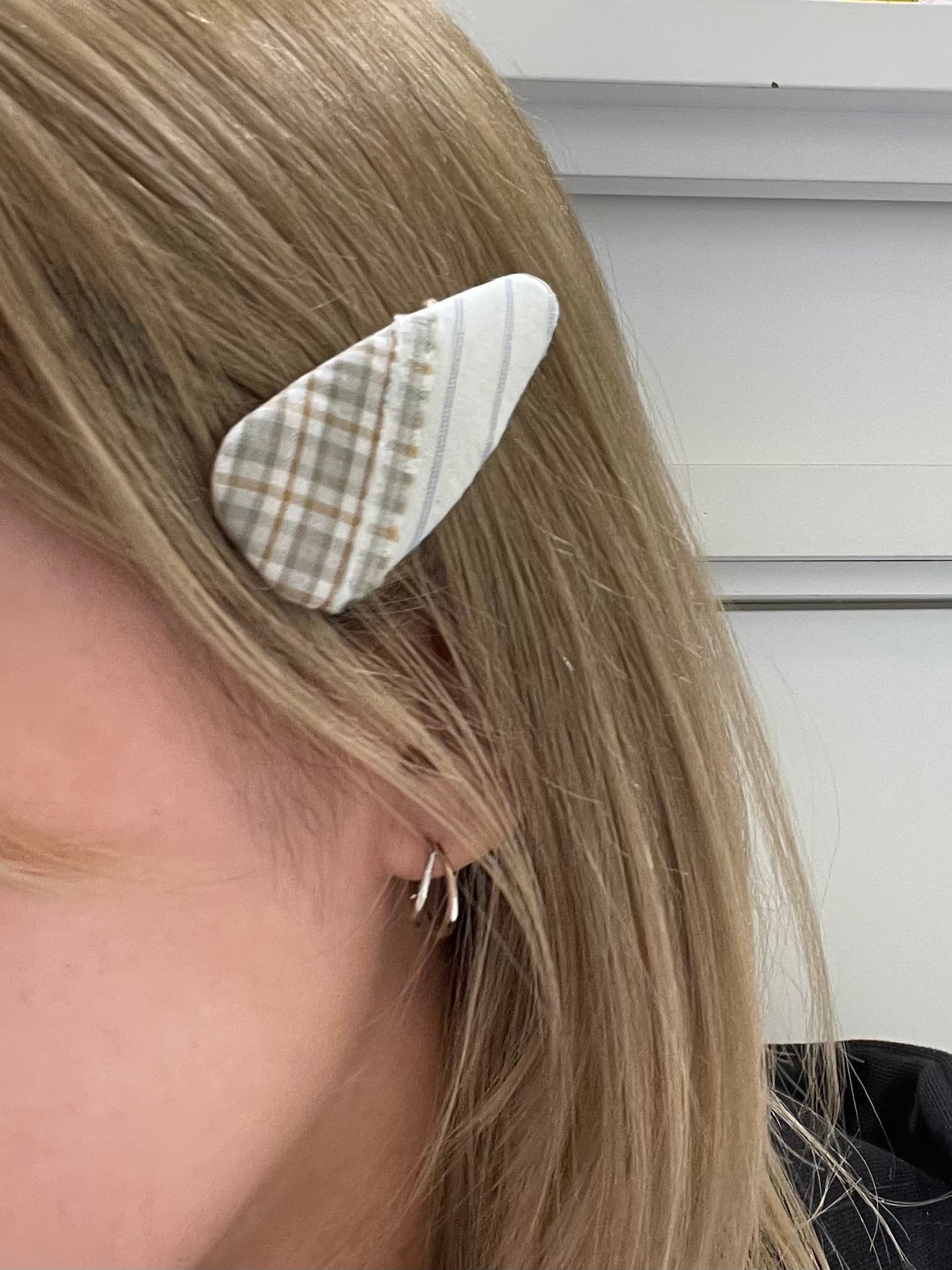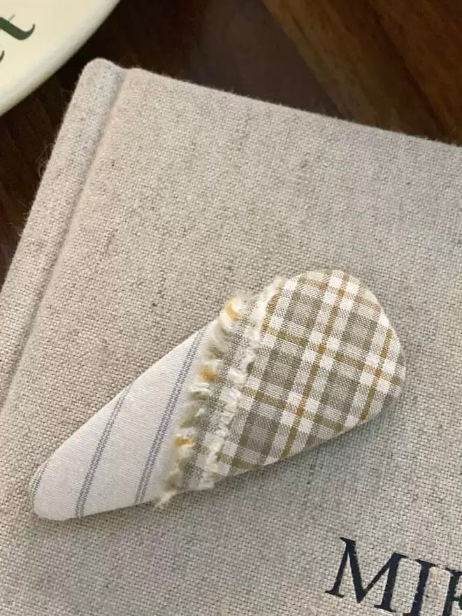 チェックとストライプ柄、2種類の生地を組み合わせたヘアピン