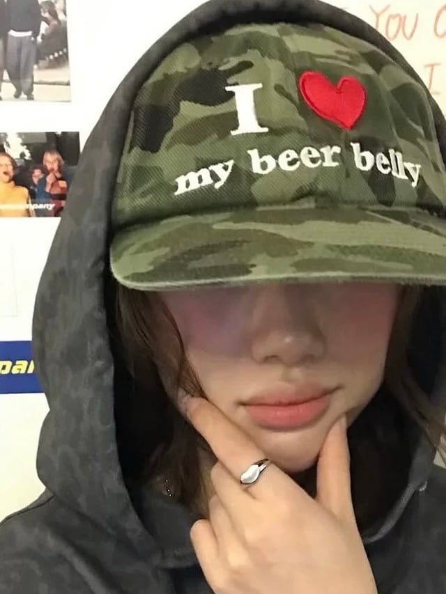 「I ♥ my beer belly」のロゴがポイントのキャップ。