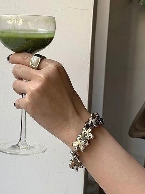 小さなお花モチーフが連なった、存在感のあるブレスレット。