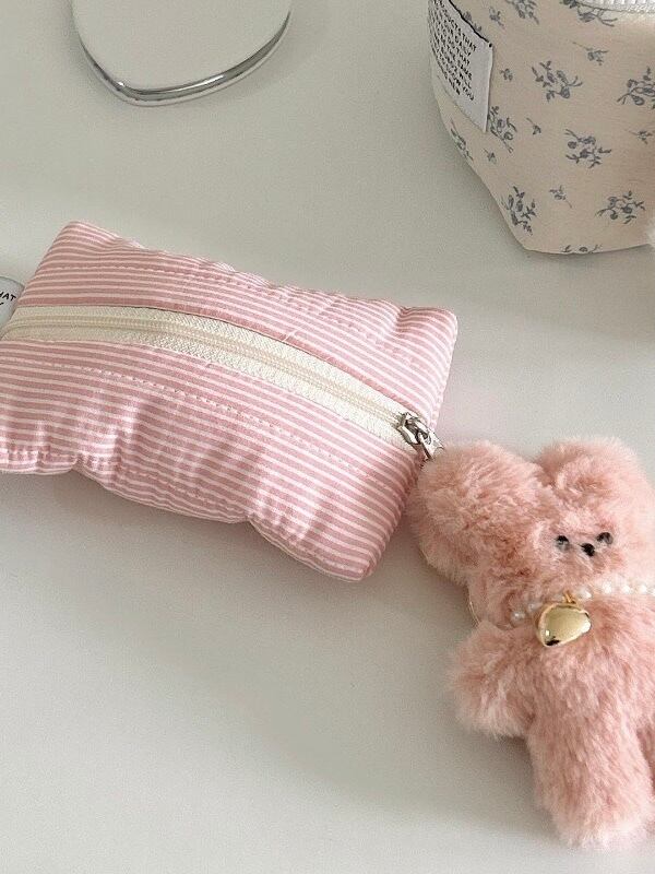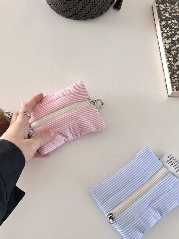 ボーダー柄に爽やかなカラーを取り入れたコンパクトなミニポーチ