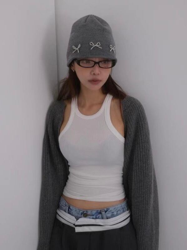 《即納》ribbon knit beanie