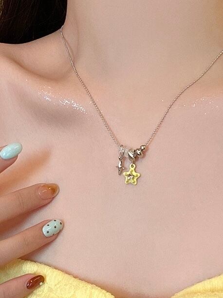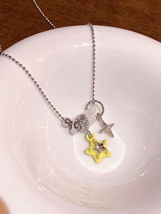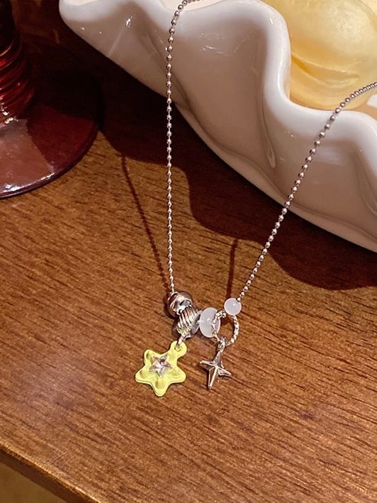 小さなビーズとチャームを組み合わせた、遊び心のあるネックレス⭐️