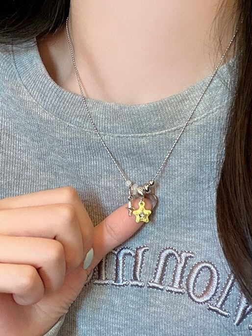 イエロースターのチャームがコーデのワンポイントになってくれて、さりげなく可愛さをプラスしてくれます。
