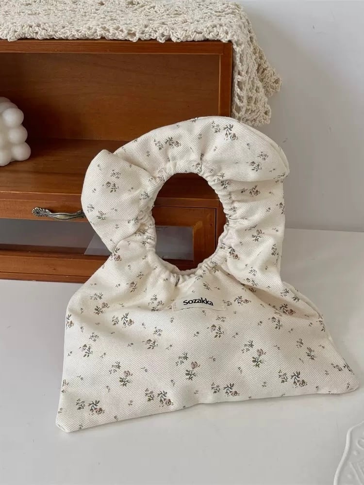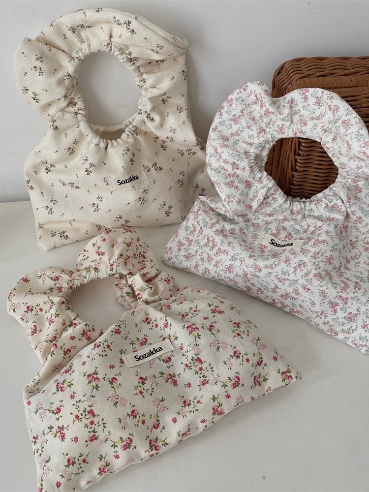やさしい風合いのコットン素材にナチュラルな花柄をあしらったミニバッグ