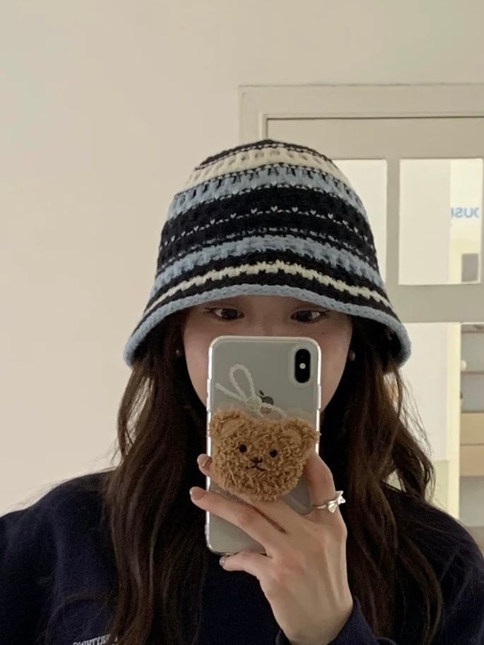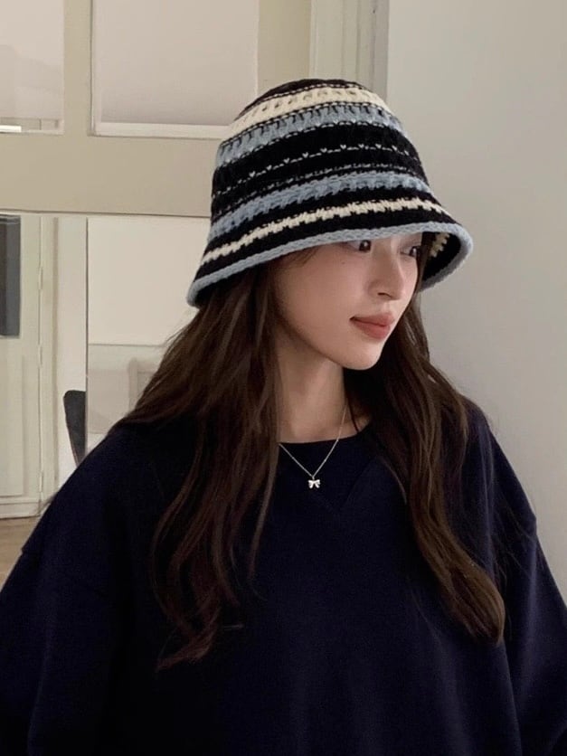 《即納》stripe knit bucket hat