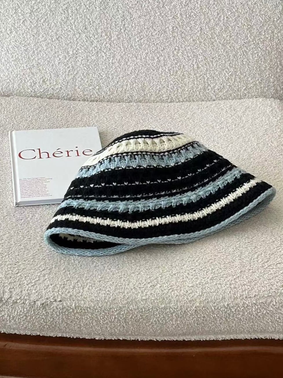立体感のある編み柄が特徴のニットバケットハット。