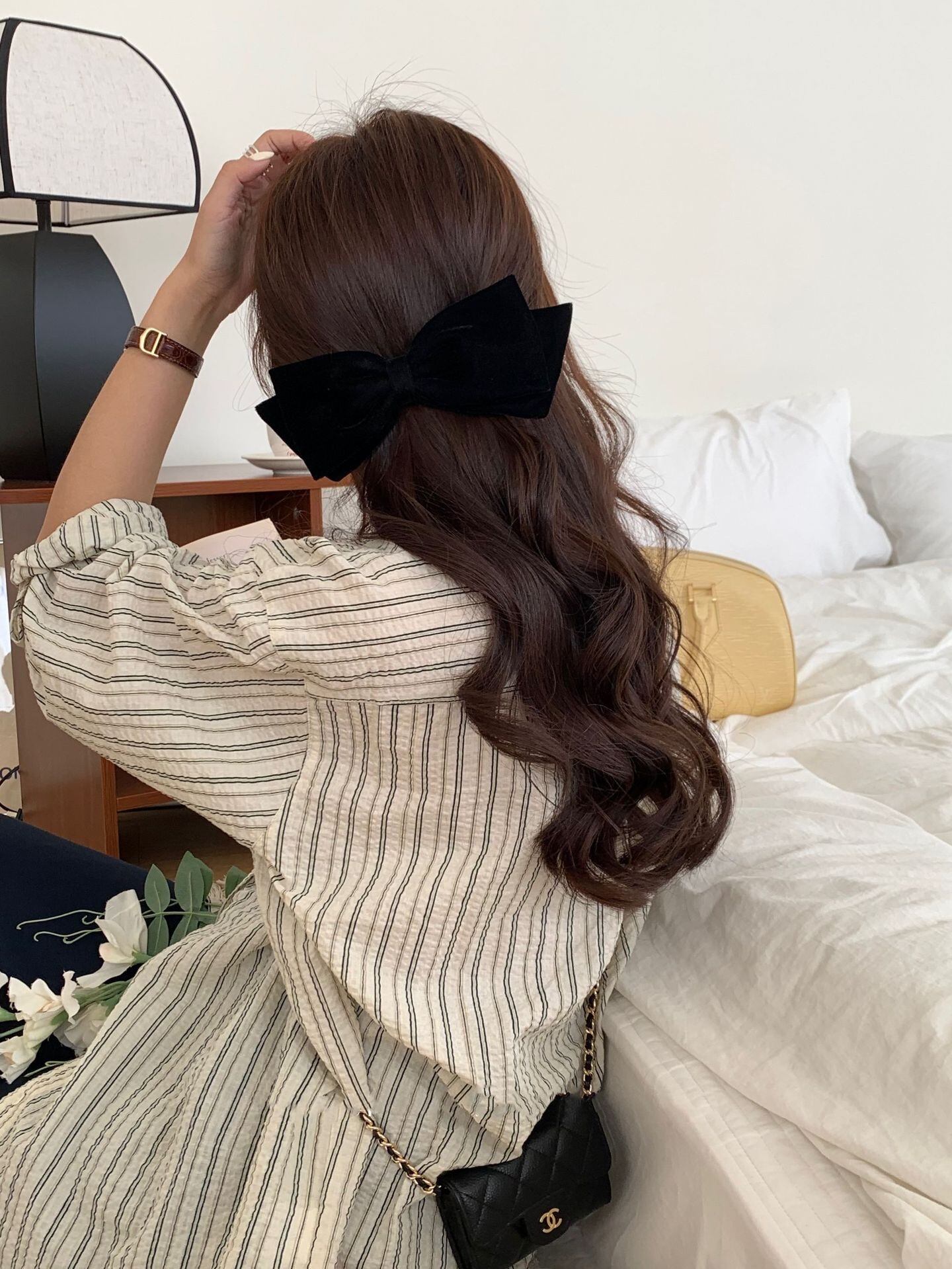 ベロア素材のシンプルなリボンです᧔⚬̣͙̣᧓
